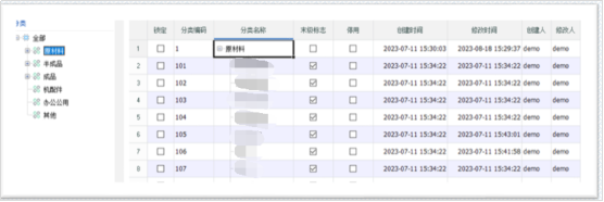 仓库按原材料仓、成品仓、半成品仓、五金件仓库等分类进行设置。物品也是按分类进行管理。