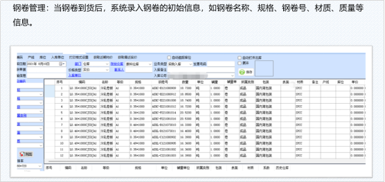 钢卷作为原材料,价值高,在入库时必须做好原始信息的录入,便于后续的追踪。。