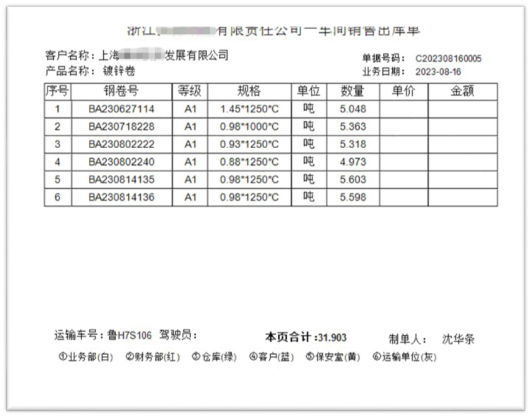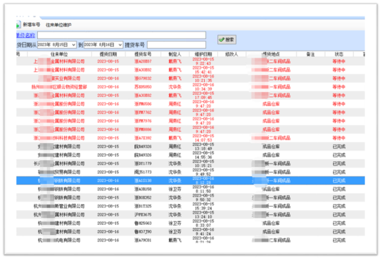 钢材成品的价值高,而且运输成本也不低。为确保装车前后的物流信息准确无误,可以支持对物流车辆的出入进行管理,以及订单与车辆、司机进行关联。图1是提货车辆的排队信息,有车牌号、排队状态、提货单位。图2是司机携带的出门单,凭出门单开车出去。